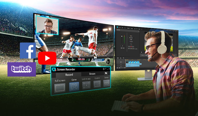 Allez au-delà de la simple diffusion de jeu et commencez à créer du contenu qui suscite la réaction de vos spectateurs sur Twitch, YouTube ou Facebook. Intégrez les commentaires de la webcam dans vos diffusions en direct, ou enregistrer et éditer vos gameplays pour vous concentrer sur les meilleurs moments.